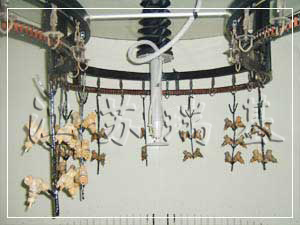涂裝生產(chǎn)線是通過(guò)輸送設(shè)備來(lái)實(shí)現(xiàn)的連續(xù)生產(chǎn),因此它在涂裝生產(chǎn)線上廣泛被采用.通常用的輸送設(shè)備有:懸擺式輸送鏈,電軌懸掛輸送鏈,滑橇式地面輸送鏈,普通和輕型懸掛輸送鏈,普通和輕型積放懸輸送鏈,地面積放輸送鏈,反向積放輸送鏈等.汽車(chē)涂裝線的前處理、電泳生產(chǎn)線,一般采用積放鏈、普通懸鏈、電軌小車(chē)等;中涂、面漆采用滑橇式地面輸送鏈或其它形式的地面輸送設(shè)備。對(duì)于摩托車(chē)、家電或其它工件,可采用普通和輕型積放懸掛輸送鏈。對(duì)懸掛輸送鏈,為防止鏈條油污等污染懸鏈上的工件,常采用集油盤(pán)和“C”型吊具。